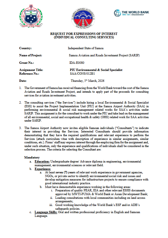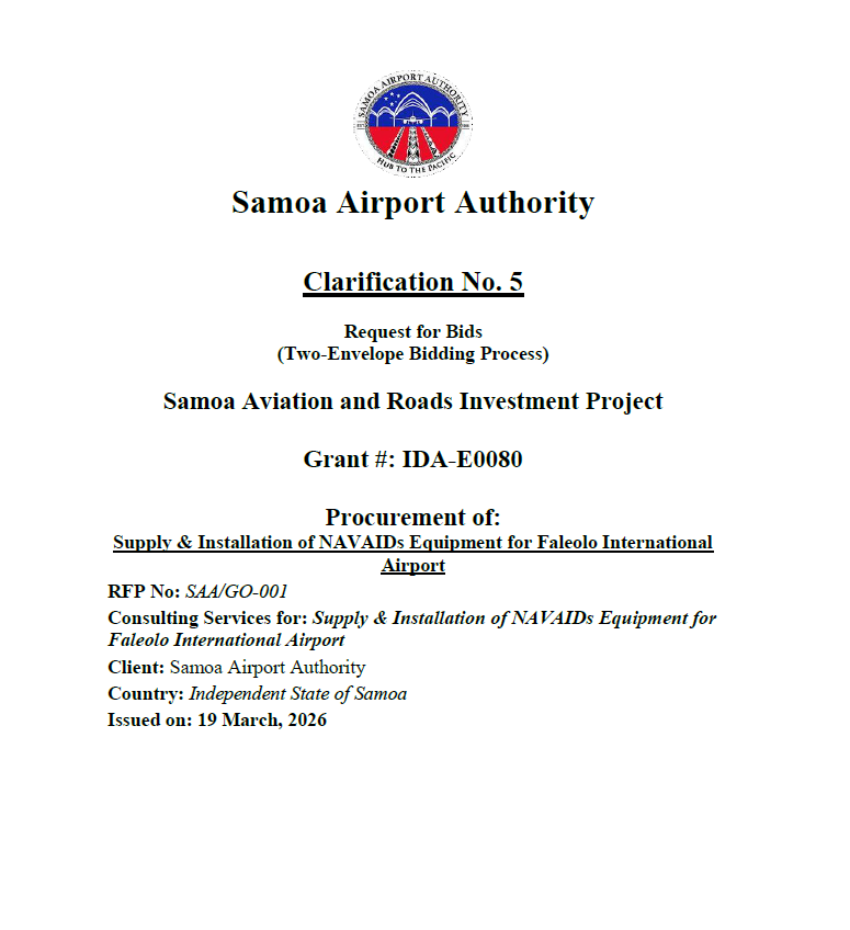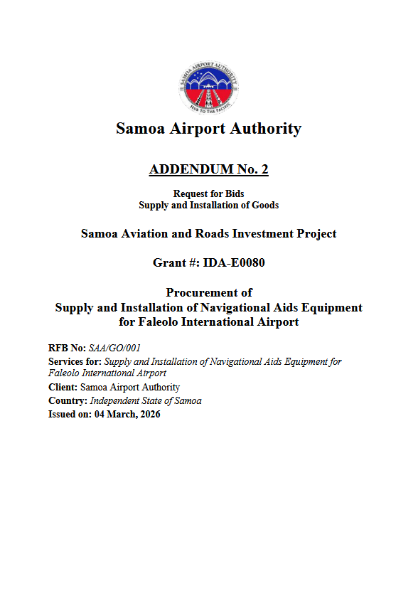 RFB - Supply and Installation of Navigational Aids Equipment for Faleolo International Airport - SARIP